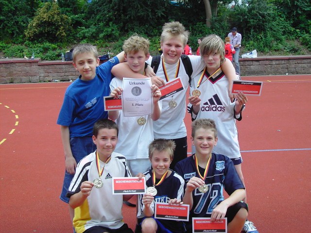 Am Freitag, 03.06.2005, fand ein von der SV organisiertes Fußballturnier der 5. und 6. Klassen statt. 8 Mannschaften mit Jungs und Mädchen traten an diesem Tag zum Turnier an. In jeweils 15-minütigen Spielen konnten die max. 6 Spieler ihr spielerisches Talent unter Beweis stellen. Auf die Sieger sowie die Zweit- und Drittplazierten warteten Medaillen, Urkunden und Media-Markt Gutscheine zu je 10 € für die Sieger und zu je 5 € für die Mannschaften auf Platz 2 und 3, welche aus der SV-Kasse finanziert wurden.