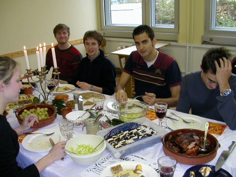 In Anlehnung an die Vox-Sendung "Das Perfekte Dinner" entschlossen wir - die Lateinschüler der 13. Jahrgangsstufe - uns, ein besonderes Dinner bzw. Gastmahl nach römischer Art für uns selbst zuzubereiten. Dafür suchten wir im Vorfeld mit Frau Gottert Rezepte aus dem alten Rom aus und stellten eine komplette Cena zusammen - ab ovo ad mala, von der Vorspeise bis zur Nachspeise. Natürlich sollte sie auch in (relativ) römischem Ambiente stattfinden. Am 14.12.2006 war es dann im Anschluss an die 6. Stunde soweit:
