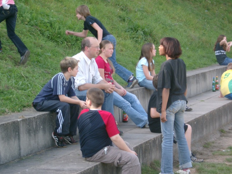 Nach soviel Sport hatte man natürlich Appetit auf das Grillbüfett (unter der Leitung von Frau Raudonat). Unser neuer Schulleiter Herr Kallenbach kam vorbei - auch um das nachfolgende gemeinsame Singen von "Leibniz-Hits" unter der Leitung von Frau Vehling kennen zu lernen. Zum Ausklang des Abends standen noch Spiele und Vorlesen auf dem Programm.