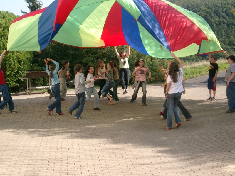 Nach dem Mittagessen organisierten die Klassenleiterteams einen Sportnachmittag, in dessen Mittelpunkt das Fußballturnier unter der Leitung von Herrn Jung stand. Es gewann nach vielen spannenden Spielen die Klasse 5a! (Herzlichen Glückwunsch!) Aber auch von Fr. Hoock angeleitete Spiele mit dem Schwungtuch und vieles andere mehr war neben der anstrengenden "Fanarbeit" für die Fußballmannschaften angesagt.