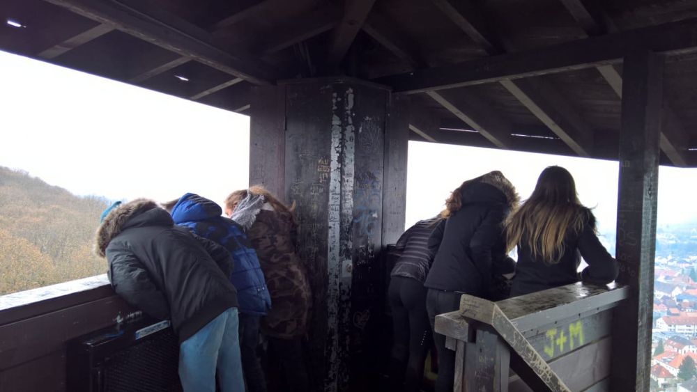 Da das Bad Bergzaberner Café Herzog dienstags geschlossen hat, musste der traditionelle Café-Besuch inklusive heißer Schokolade mit anschließendem Stadtbummel dieses Jahr einer nicht minder ansprechenden Wandertour weichen. Bei trockenem, nicht allzu windigem Wetter wagten wir durch die Weinberge hindurch vorbei an der Villa Pistoria und der Villa Zickzack den Aufstieg auf den Liebfrauenberg. Oben angekommen fassten sich die meisten ein Herz und erklommen zusätzlich noch die 154 Stufen zur Aussichtsplattform des fast 30 Meter hohen Bismarckturms. Doch nicht umsonst: Am Ende des Aufstiegs wurde man mit einem sensationellen Panoramablick über Bad Bergzabern, die Rheinebene und den Pfälzer Wald belohnt.