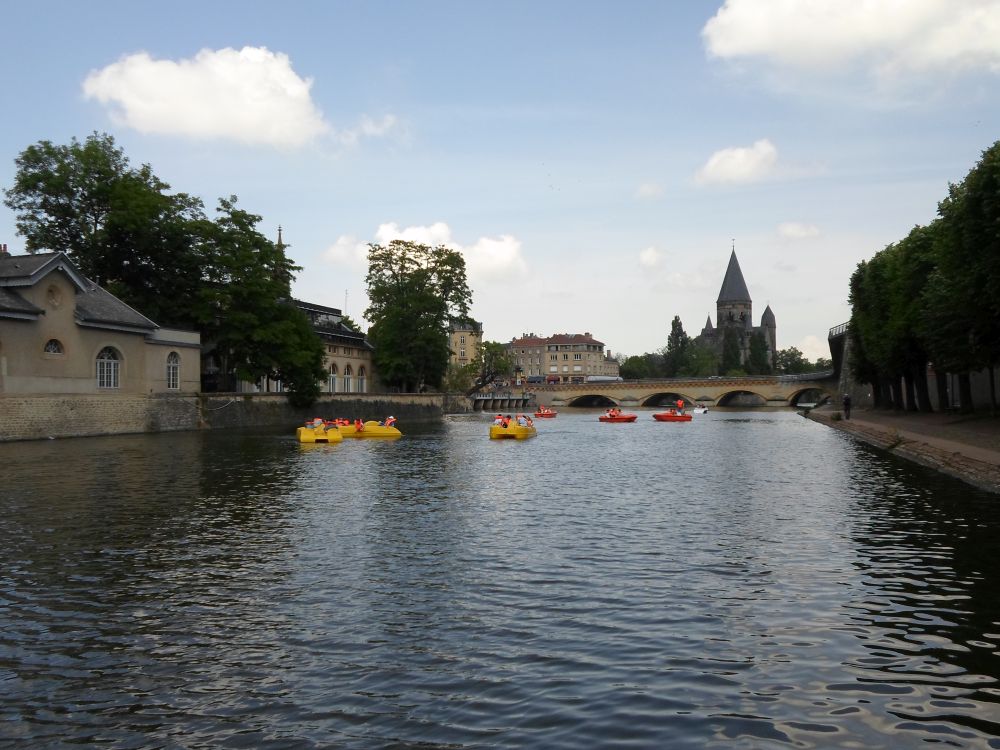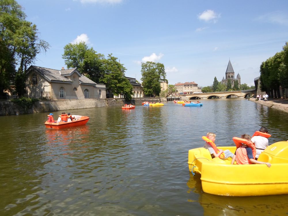 Am nächsten Tag trafen wir uns um 8:00 Uhr an der Schule und fuhren mit den Zug noch einmal nach Metz. Dort erkundeten wir die ganze Stadt bis wir an der Kathedrale ankamen.Zwei Stunden Freizeit stand nun auf dem Plan in denen wir unser Mittagessen essen konnten und shoppen gehen konnten. Danach wurden die meisten beim Tretbootfahren nass und ließen sich dann in einem Park wieder trocknen Zum Schluss liefen wir wieder zum Bahnhof und fuhren nach Thionville zurück. Den Rest vom Tag verbrachten wir wieder bei den Gastfamilien.