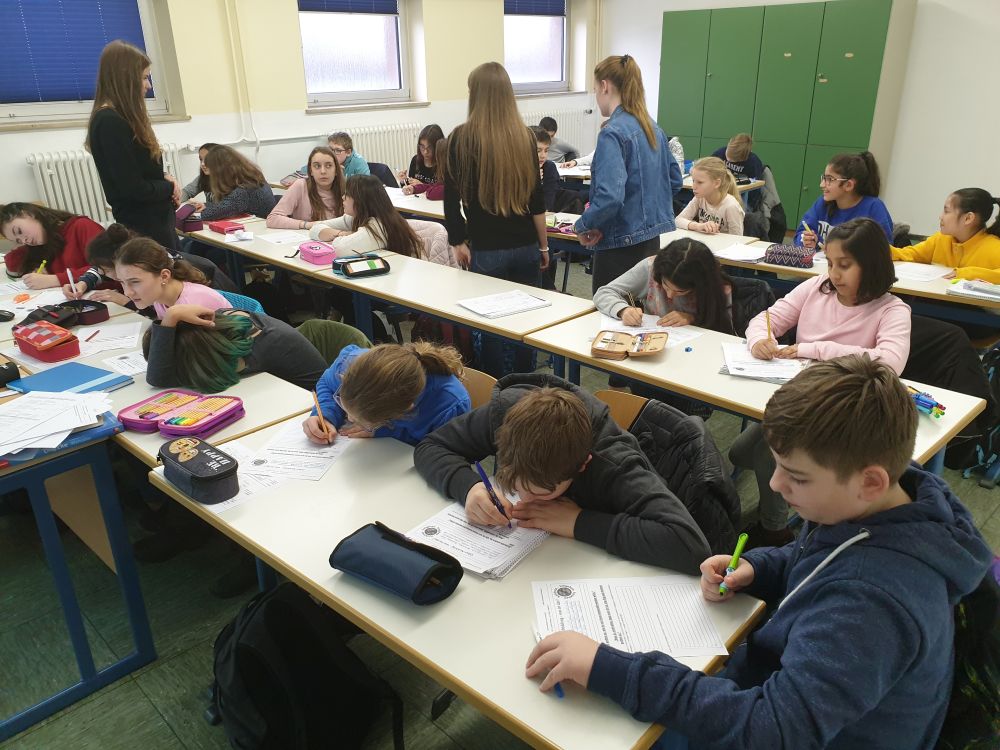 In vier Gruppen aufgeteilt wurden jeweils zwei sechste Klassen in der 1.-3. Stunde und später der 4.-6. Stunde zum Thema Cyber Mobbing unterrichtet. Die Schüler hatten teilweise schon viele Erfahrungen gesammelt, von welchen sie uns gerne berichteten und waren mit Interesse bei der Sache. Immer wieder fiel uns auf, dass dieses Thema gerade bei den jüngeren Klassen ein aktuelles Thema ist, weshalb wir zum Schluss mit den Schülern eine Liste mit ,,Chatiquette- Regeln", also dem richtigen Umgang miteinander in den sozialen Medien, aufstellten. Auch hier hatten die Schüler sehr gute Beiträge zu leisten und nach einer abschließenden Abstimmung einigten sie sich schnell auf eine Liste der wichtigsten Regeln. Zum Schluss stellten wir den Schülern noch eine App vor, auf welcher sie viele hilfreiche Tips zum Thema Cyber Mobbing, aber auch Kontaktdaten von anonymen Anlaufstellen finden können, sollten sie sich nicht an Eltern/Familie oder uns Medienscouts wenden wollen.
