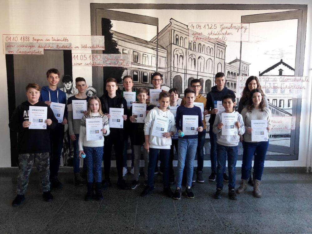 Die jeweiligen Stufensieger der Sekundarstufe I qualifizierten sich mit diesen tollen Ergebnissen für den Schulentscheid. Mit nur einem Punkt Unterschied siegte dabei Yannick Groh (9a) knapp vor Tim Derda (10a) und Florian Schilling (9c). Yannick erhielt neben einer Urkunde einen kleinen Preis und qualifizierte sich für den Landesentscheid Ende März. Damit nähert sich die Chance, der beste Geographieschüler Deutschlands zu werden.