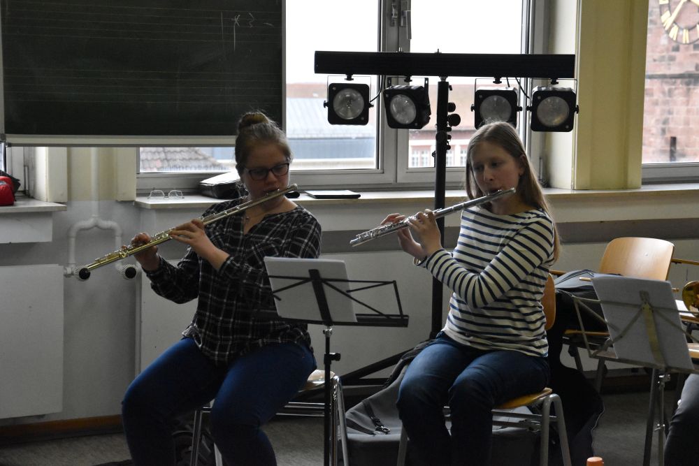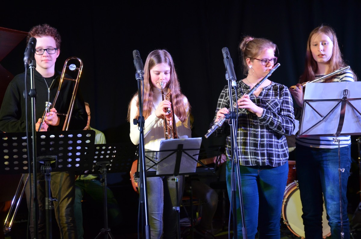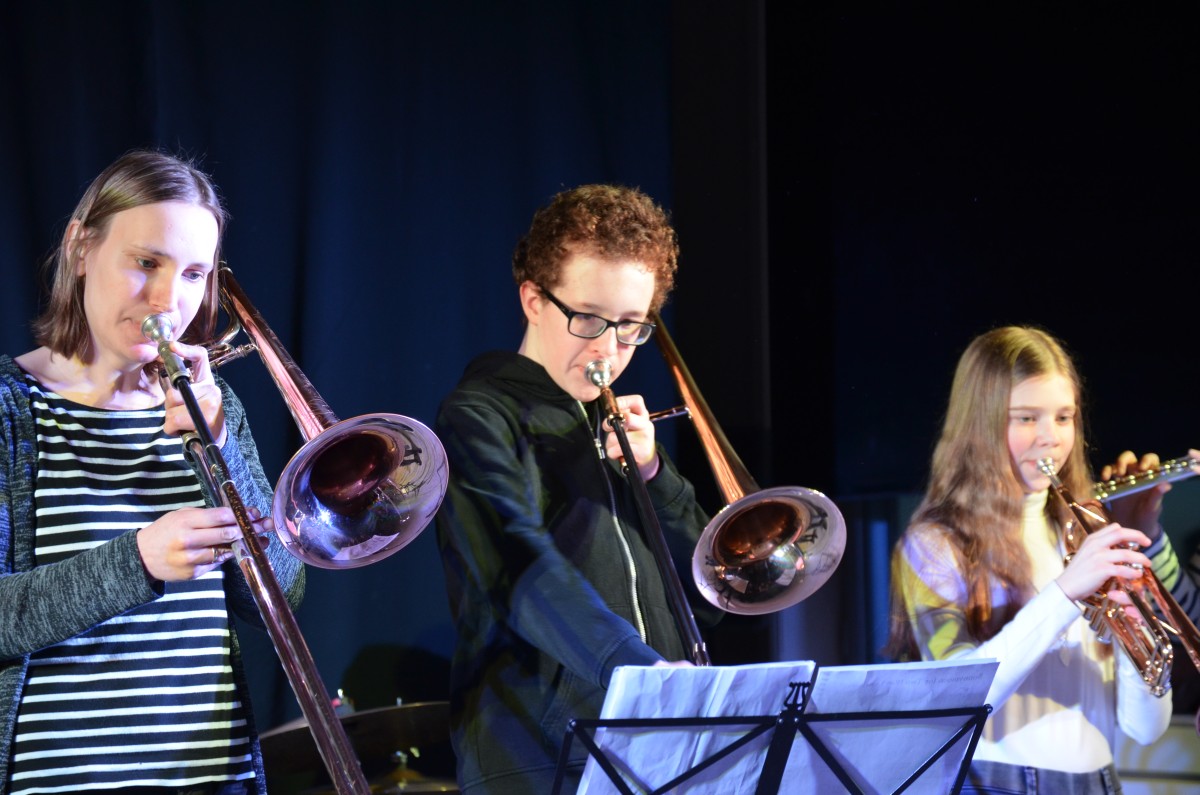 Nach eineinhalb Tagen intensiver Probenarbeit wurden die Ergebnisse einem erfreulich zahlreich erschienenen Publikum dargeboten. Jede der beiden Schülercombos präsentierte zwei Stücke, danach spielten alle gemeinsam noch "Sonnymoon for two".
