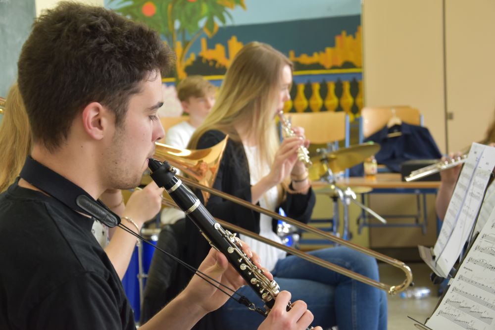 Vom 15.3.19 bis 16.3.19 fand der Jazzworkshop mit dem Christof-Heringer Trio statt. Zum dritten Mal haben wir uns zwei Tage mit dem Thema Jazz und der damit verbundenen Improvisation beschäftigt. Mit viel Geduld und auf uns übergreifender Begeisterung, leiteten die drei Profi-Jazzmusiker zwei Tage voller Proben in unseren Combos. Trotz kurzweiligen Überforderungserscheinungen waren die Ergebnisse mehr als zufriedenstellend und weckten in vielen jungen Musikern die Freude am Jazz.