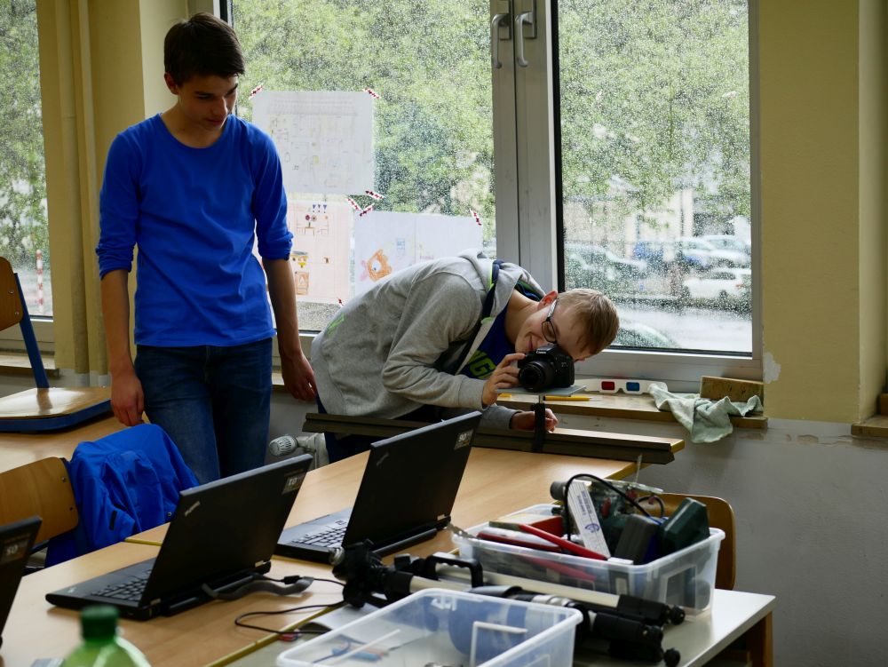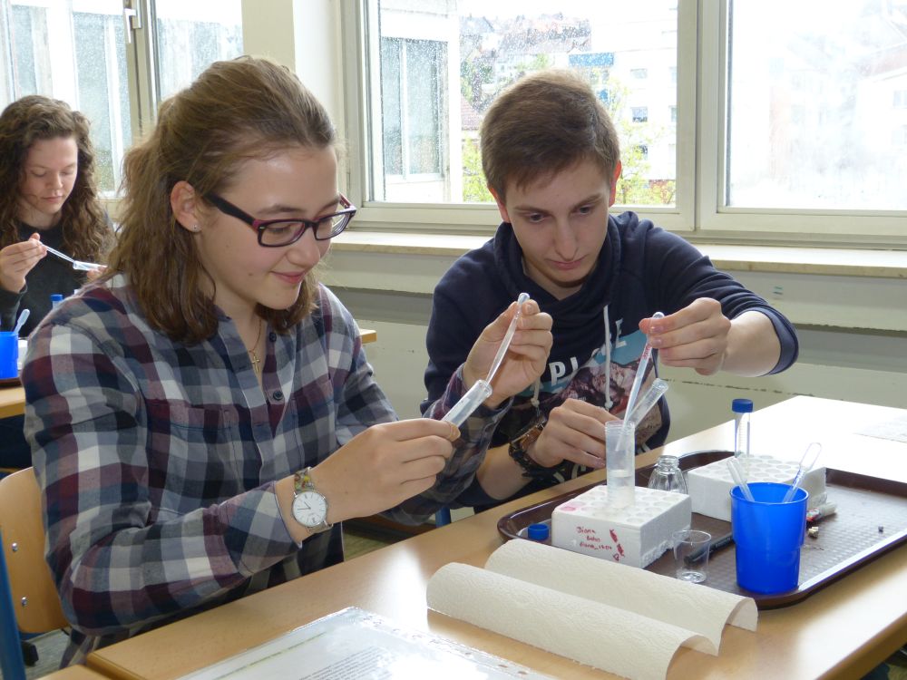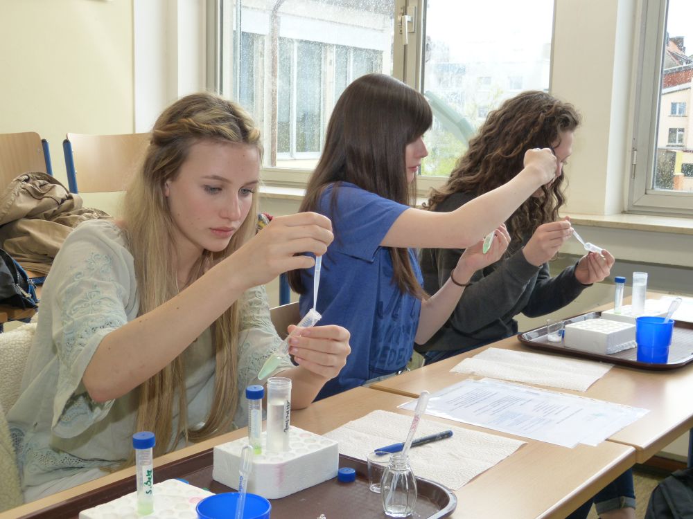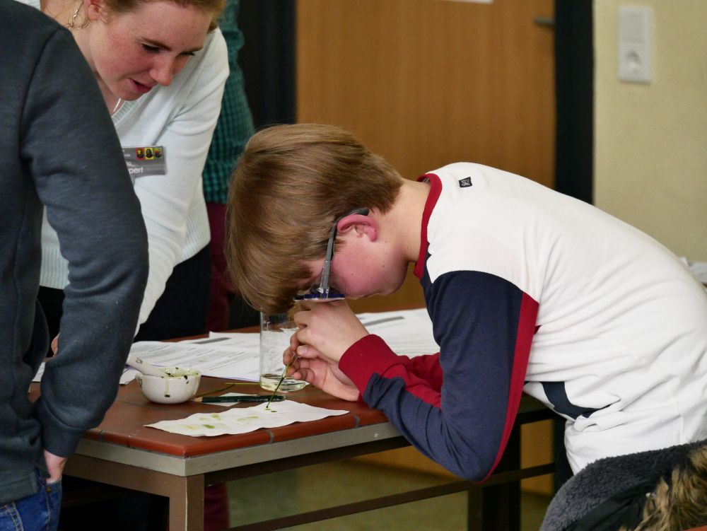 So bestand beispielsweise die Möglichkeit, mit Mikroprozessoren zu arbeiten, Roboter zu bauen und zu steuern, an einer Vogelexkursion teilzunehmen, Schweineaugen zu sezieren, die eigene DNA zu isolieren und, und, und. Um 18 Uhr konnten Eltern, Geschwister, Freunde und Interessierte die Workshops besuchen und die Ergebnisse sichten. Parallel dazu konnten jüngere Schülerinnen und Schüler an einem Vortrag von Herrn Prof. Dr. Thomas Stumm von der Hochschule Kaiserslautern zum Thema „Seifenblasen" teilnehmen und die Faszination, die den bunt, schillernden Seifenblasen innewohnt und die doch so viele Fragen aufwerfen, erleben.