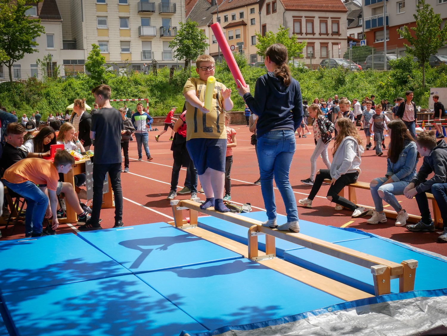"Filme und Serien" - Unter diesem Motto fand am 15.06.2019 das diesjährige Schulfest des Leibniz-Gymnasiums statt. Die Schülervertretung (unterstützt durch unseren Hausmeister Herrn Schmitt) organisierte diesen gelungenen Tag, an dem die Schulgemeinschaft sowohl bei den Ständen und Aktivitäten als auch auf der Bühne ein attraktives Programm bieten konnte. Die einzelnen Klassen und Kurse sowie die Elternvertretung sorgten nicht nur für ein breit gefächertes kulinarisches Angebot, sondern warteten auch mit interessanten Spielen und Geschicklichkeitswettbewerben auf, sodass es niemandem langweilig werden konnte.
