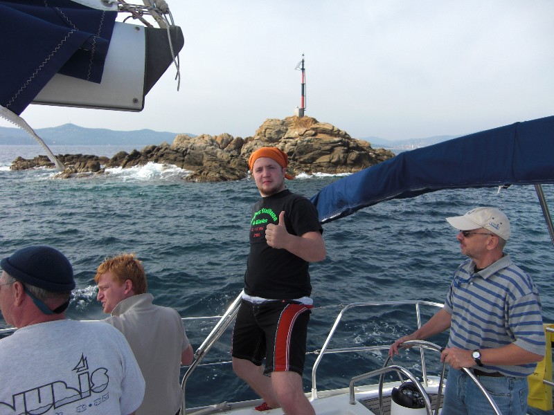 Ab der Wochenmitte wurde bei herrlichem Herbstwetter, das uns übrigens die gesamte Zeit begleitete, der Wind wieder von Tag zu Tag stärker. Nach der vierten Etappe mit Zielhafen Cavalaire, führte uns die Schlussetappe auf einem Dreieckskurs wieder zurück nach Bormes les Mimosas. Die kleine Felseninsel "La Formique", die dabei als Wendepunkt diente, war inzwischen für alle Teilnehmer eine gute Bekannte. Schon bei der ersten Tagesetappe musste dieser Punkt umrundet werden. Bei der Etappe des Vortages nach Cavalaire bildete aus Süden kommend die Peillinie 50° auf diese Felseninsel das Ziel. Über Funkkanal 69 bestand während der Regatta ständig Kontakt zu den anderen Yachten und zur Regattaleitung, die unter dem Rufnamen P(apa) F(oxtrott) C(harlie) erreichbar war. Die Funksprüche sorgten dabei durchaus manchmal für Erheiterung bei den anderen Teilnehmern (Beispiel bei der besagten Etappe: Eine Yacht meldet: "Peilen Ziel in 50°, laufen durchs Ziel!" - Antwort Regattaleitung: "Nein! Ich stehe doch dort!", die anderen Teilnehmer hörten amüsiert mit).