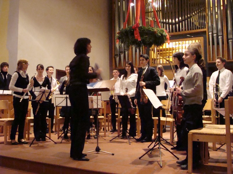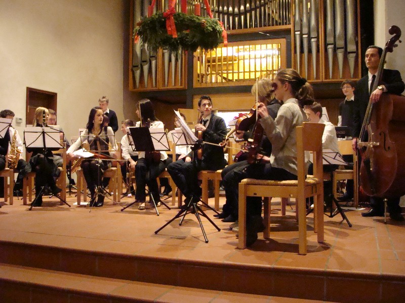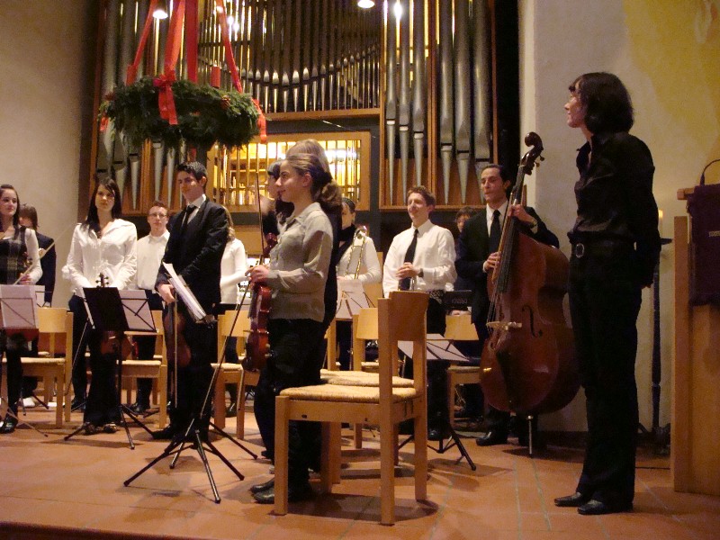Die Antworten auf diese und weitere Fragen wurden bei diesem Gesprächskonzert mit dem Thema "da capo - Die Wiederholung in der Musik" gegeben.Frau Vehling und die Interpreten demonstrierten dem Publikum Beispiele für Wiederholungen in der Musik und erläuterten ihre beabsichtigte Wirkung. Passend zu den Erläuterungen präsentierten Schülerinnen und Schüler aller Klassenstufen Orchester- und Solobeiträge aus vier Jahrhunderten. Die Zuhörer erlebten eine ebenso lehrreiche wie unterhaltsame Unterrichtsstunde in Musik.