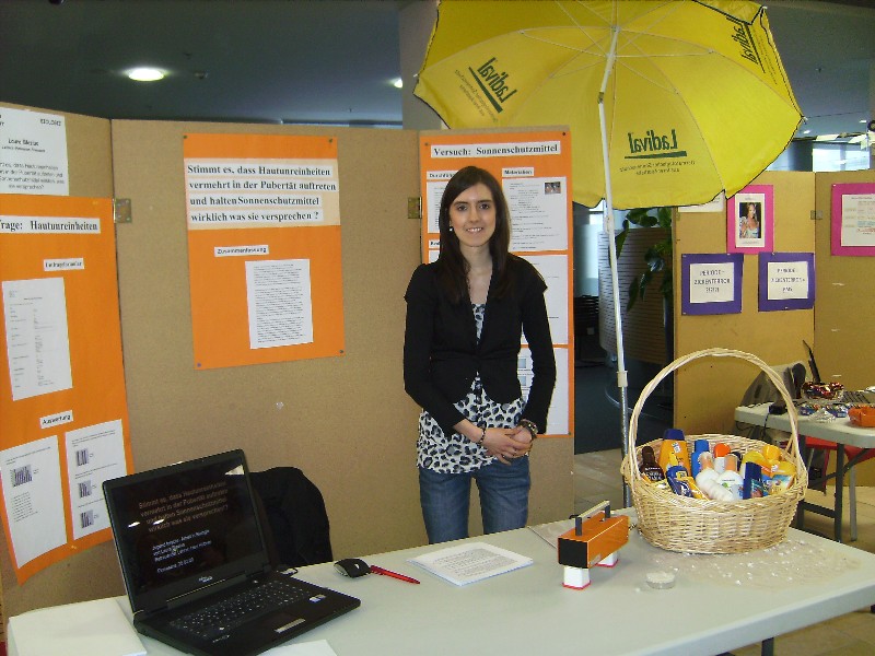 Laura Blasius untersuchte, ob Sonnenschutzmittel wirklich halten, was sie versprechen, und erhielt für die Gestaltung des schönsten Ausstellungsstandes einen Sonderpreis.