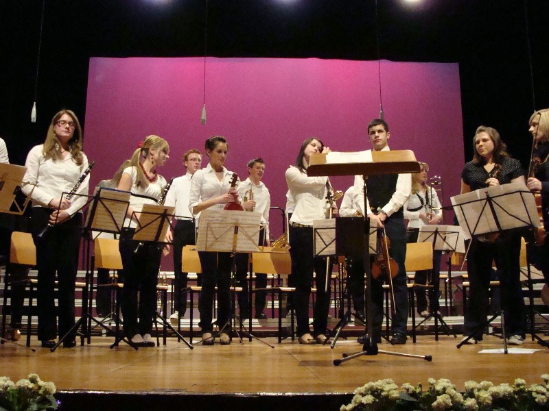Wieder einmal veranstaltete das Leibniz-Gymnasium seinen traditionellen Musikabend. Nach monatelanger Vorbereitung und vielen Proben, die in den letzten beiden Tagen davor das gesamte Schulleben in die Pflicht genommen hatten, boten in der Festhalle die verschiedenen Musikgruppen des Hauses unter Leitung der Fachschaft Musik ein vielgestaltiges Programm. Auftritte hatten das Flötenensemble, die Instrumental-AG der Unterstufe, Charlotte Gries & Daniel Engels, der Chor der Klassen 5 - 7 und das Schulorchester in großer Besetzung.