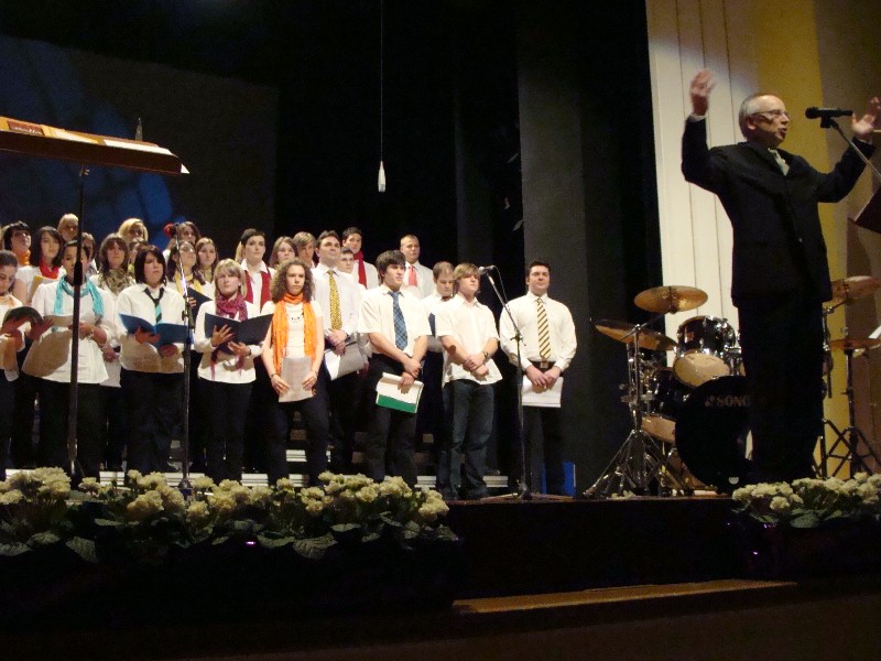 Nach der Pause begeisterten der Chor der Klassen 7 - 13 und die Chor-AG mit Balladen-Highlights der Popmusikgeschichte das Publikum, das immer wieder zum Mitmachen eingespannt wurde.