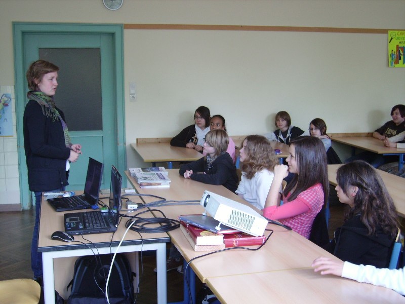 An drei Tagen in der vorletzten Schulwoche vor den Sommerferien und vorher schon einmal am 20.05.10 nahmen jeweils in zwei Durchläufen verschiedene Klassen an einer Veranstaltung teil, die es sich zum Ziel gesetzt hatte, Ursachen und Folgen des Klimawandels zu erklären. Jeweils in einer 90-minütigen Einheit wurden Klima- und Landschaftsveränderungen mit Live-Satellitenbildern im Vergleich mit früheren Aufnahmen sichtbar gemacht. Aus der Perspektive des Weltalls sollten die Teilnehmer der "Klimaexpedition" die Auswirkungen des Klimawandels tagesaktuell erleben und begreifen. Ergänzt wurde die Veranstaltung durch einen Unterricht, in dem die Schüler(innen) ihr eigenes Verhalten in seiner Bedeutung für den globalen Klimawandel überdenken sollten. Die Veranstaltung wurde von einer Institution aus der Recycling-Wirtschaft in Zusammenarbeit mit der Verbraucherzentrale angeboten und von Frau Gottert vermittelt.