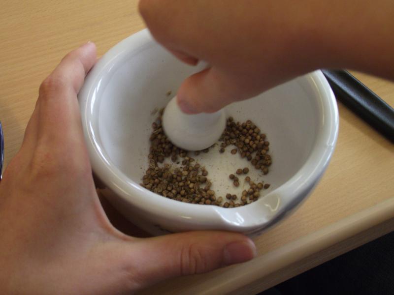 Am Mittwoch, den 20.06.12 und Donnerstag, den 21.06.12 kochten die Lateiner der Klasse 7b mit ihrer Lehrerin, Frau Gottert eine römische Mahlzeit. Am Tag zuvor bereitet Frau Gottert liebevoll die Speisen vor und am Mittwoch wurden Vorspeise und Hauptgang serviert. Die Vorspeise war ein Hähnchen- Gurken- Schichtsalat mit Balsamico- Essig- Honigdressing. Der Hauptgang war ein Schweinebraten mit Feigen und Aprikosen in Honigsoße. Jetzt mussten die Schüler es sich nur noch schmecken lassen. Am Donnerstag freuten sich alle auf den Nachtisch. In der Küche des Lehrerzimmers wurden Nüsse und Datteln in Honig karamellisiert. Anschließend teilte Frau Gottert die süße Masse in kleine Portiönchen auf. Diese wurden während eines Filmes über die römische Esskultur verspeist.