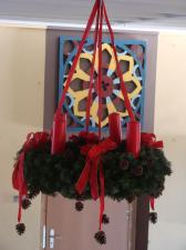 Frau Gottert hat wieder mit Schüler(inne)n zwei Fenster und das Sekretariat dekoriert.