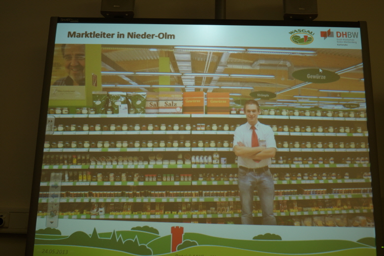 Im Rahmen der Projektwoche zum 125-jährigen Schuljubiläum des Leibniz-Gymnasiums besuchten ehemalige Leibnizschüler jede Klasse der Schule. In unsere 10c kam mit Patrick Müller (24 Jahre) der jüngste von allen. Der Wasgau-Marktleiter, der 2008 erfolgreich sein Abitur an unserem Gymnasium bestand, und danach ein sechs Semester andauerndes duales BWL-Studium (studieren & arbeiten) bewältigte, beschrieb seinen Werdegang anschaulich und mit viel Witz.