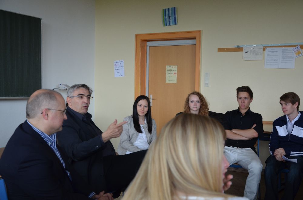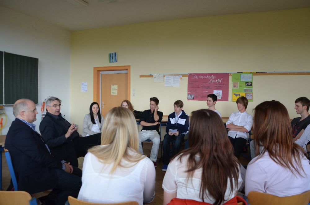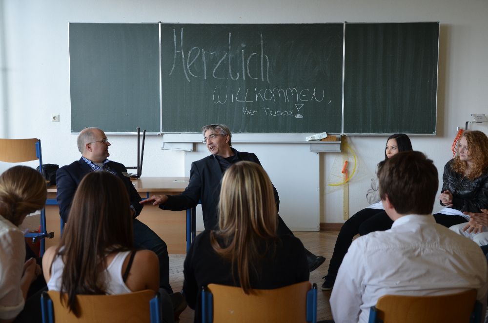 Einen spannenden Eindruck in die komplexe Welt der Medienrechte erhielt der Stammkurs kr1 von Herr Faul vom Direktor der Landesmedienanstalt Thüringen Jochen Fasco. Die Medienanstalt fungiert als Aufsichtsbehörde für private Rundfunktanbieter, Fernsehanstalten und Telemedien, vergibt die Sendelizensen und trennt Redaktionelles von Werbung. Nach einer kurzen Einführung in das Aufgabengebiet der Landesmedienanstalt, diskutierte Herr Fasco mit den Schülern und Schülerinnen über Vorzüge aber auch aktuelle Gefahren in der Medienlandschaft. Die ergebnisoffene Frage "Wie kompetent sind die Medien im Blick auf die Darstellung der Wirklichkeit?" stimmte den Stammkurs aber auch den Lehrer nachdenklich.