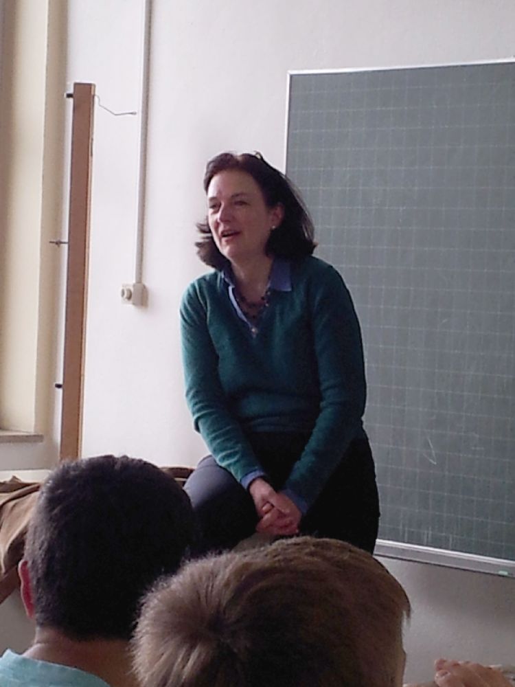 Frau Hoffmann, eine ehemalige Schülerin des LGP, war am 24.05. zu Besuch in Frau Preissners Klasse. Sie berichtete von ihrer Schulzeit am Hugo-Ball-Gymnasium und dass sie erst in der zehnten Klasse auf das Leibniz kam. Ihr Lieblingsfach war Mathe, wobei sie anmerkte, dass auch viel "vom Lehrer abhinge". Frau Hoffmann studierte Jura und arbeitete ein halbes Jahr in Italien als Rechtsanwältin. Eine Freundin, so berichtete sie, fragte sie schließlich, warum sie das tue, wenn sie dies doch eigentlich gar nicht wolle. Sie überdachte ihre Entscheidungen, konnte sich aber nicht richtig entschließen. Als sie die Diagnose „Brustkrebs" bekam, drängte es sie umso mehr eine Entscheidung zu treffen, da sie ja nicht wusste, was die Zukunft bringen würde. Sie traf eine Entscheidung und arbeitete halbtags in der Kanzlei und studierte nebenbei noch Philosophie. Nachdem sie ein Kind bekommen hatte, musste sie „sich neu organisieren". Frau Hoffmann begann als freie Lektorin zu arbeiten, d.h. Bücher von verschiedenen Verlagen zu korrigieren, was sie heute immer noch tut. Inzwischen ist sie außerdem noch die Sekretärin eines ukrainischen Bischofs [Anm. d. Red.: der für die in Deutschland und Skandinavien lebenden Ukrainer zuständig ist].