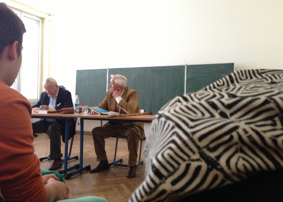 Ab 16.45 Uhr lasen die ehemaligen Leibniz-Schüler Heiner und Oskar Kröher vor der Klasse aus ihren Werken: