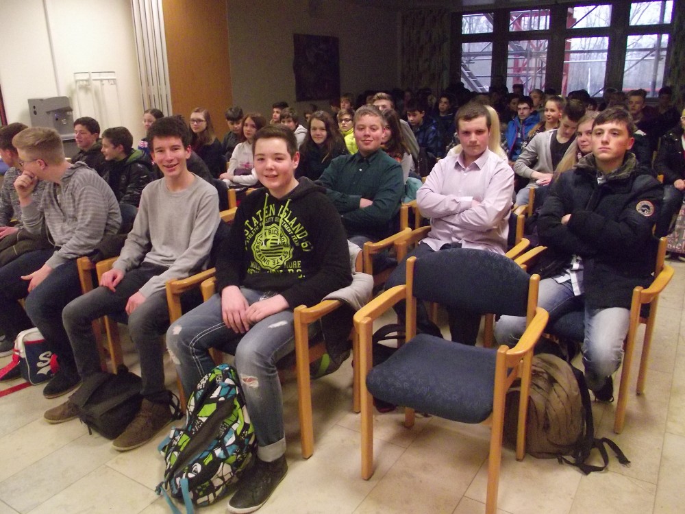 Am 23. Januar war es wieder soweit: 75 Schülerinnen und Schüler der Klassenstufe 8 nahmen am „ohne kippe!"-Programm des Krankenhauses Pirmasens teil. Alle drei angebotenen Veranstaltungssegmente fanden das rege Interesse der Jugendlichen: Nach der gastfreundlichen Begrüßung durch Frau Mann wurden die Schülerinnen und Schüler mittels einer anschaulichen und gut strukturierten Powerpointpräsentation in die medizinischen Aspekte des Rauchens eingeführt. Bei den erschreckend hohen Zahlen an jährlich neu erkrankten Krebspatienten bzw. Todesfällen (rund 140.000 jährlich), welche unmittelbar und mittelbar mit dem Rauchen in Verbindung stehen, waren die Zuhörerinnen und Zuhörer ebenso erstaunt wie bei der Menge an Erkrankungen und Organschädigungen, welche das Rauchen insgesamt verursachen kann.