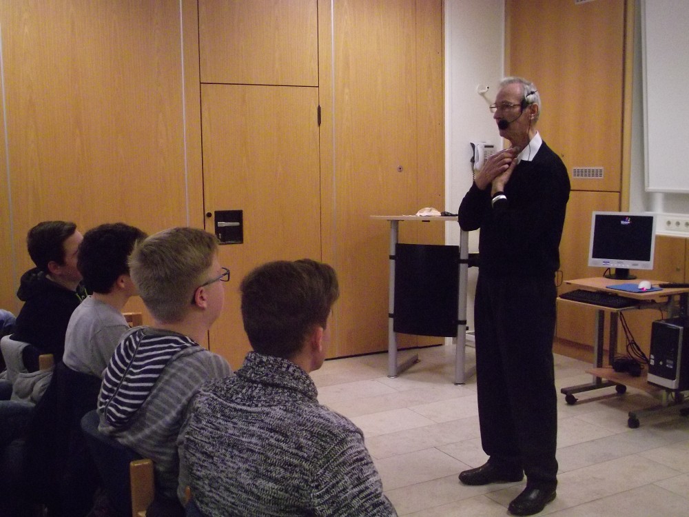 Der Schlussteil des „ohne-kippe!"-Programms erwies sich auch in diesem Jahr wieder als der für alle Schülerinnen und Schüler nachhaltigste: Herr Schmidt vom Patientenforum stellte sich als Krebspatient mit seiner Lebens- und Krankheitsgeschichte den Anwesenden vor. Authentisch, ehrlich und überaus sympathisch ließ er keine Frage der Jugendlichen unbeantwortet, schilderte ohne Pathos und doch menschlich berührend seine Erlebnisse und sein gegenwärtiges Leben und stand für alle Schülerinnen und Schüler erkennbar und erlebbar für die immensen Gefahren, die mit dem Rauchen verbunden sind.
