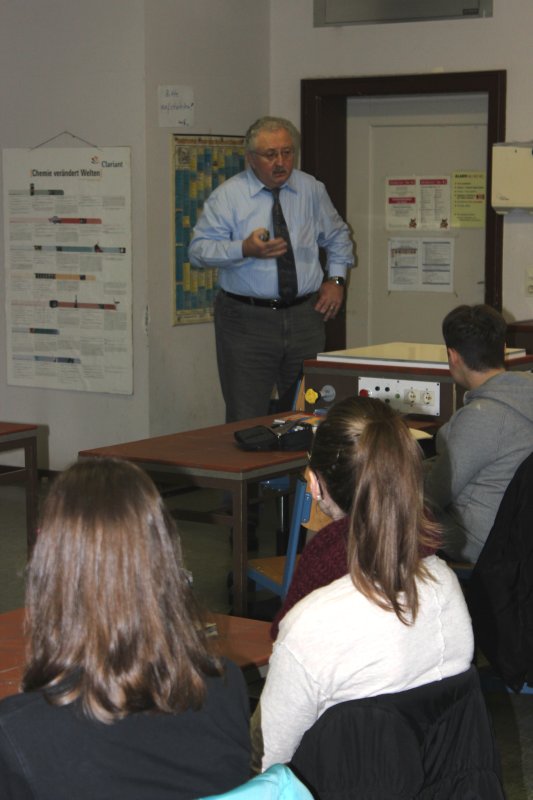 Am Montag, den 27.1.14, informierte Prof. Dr. Günter Stein, ehemaliger Schüler des Leibniz-Gymnasiums (Abiturjahrgang 1969), die Schülerinnen und Schüler der 8. Jahrgangstufe im Fach Chemie über sein Projekt „SUSI" ( Schulraum Untersuchung auf Schadstoff Immissionen).