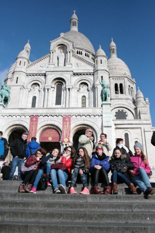 On Sunday we paid a visit to Montmarte, the quarter where all the artists lived. The weather was fantastic and we entered the church of Sacre Coeur where a mass was held at that time. We were able to buy souvenirs in the various tourist shops, too. Then we went into the city center where we saw the shop where Hemingway bought books in English and admired the church of Notre Dame de Paris. Afterwards we could choose what we would like to do on our own before we went home by bus in the afternoon.