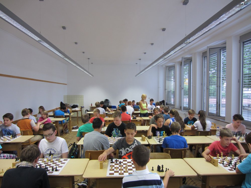 Diesmal traten Schülerinnen und Schüler bis zur Klassenstufe 10 in drei Runden gegeneinander an. Dabei erhielt jeder Spieler 20 Minuten Bedenkzeit für seine Partie. Während das Leibniz-Gymnasium die erste Runde souverän mit 11,5:6,5 für sich entscheiden konnte, endete der zweite Durchgang unentschieden. In Runde drei strengten sich die auswärtigen Schüler vom Fahrschen Wald besonders an und gewannen knapp mit 9,5:8,5.