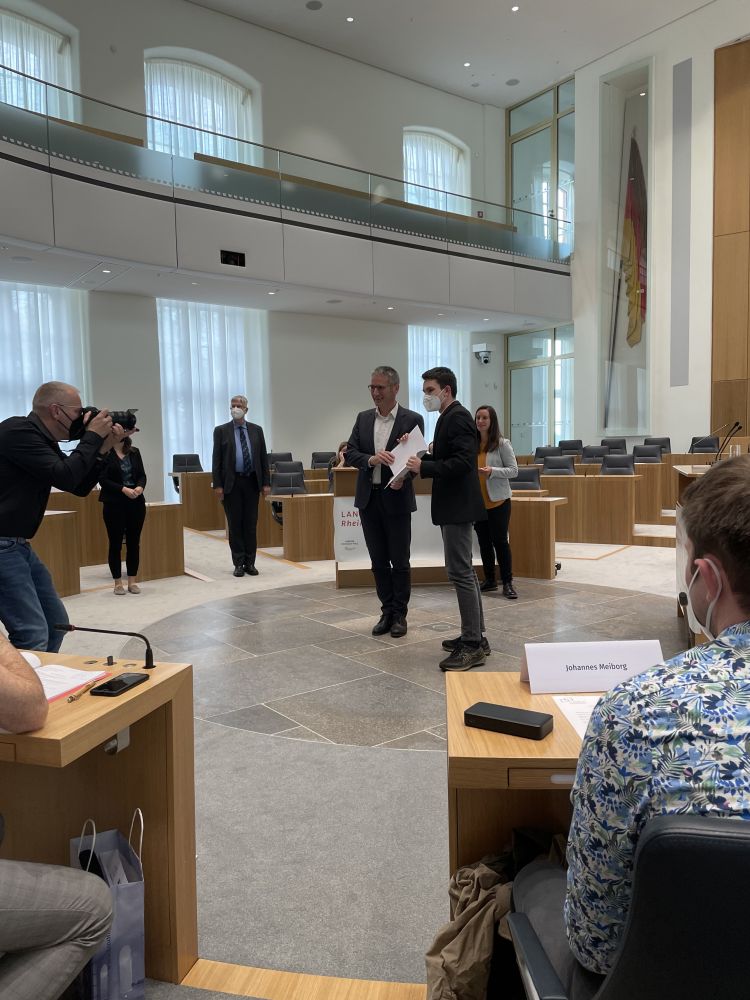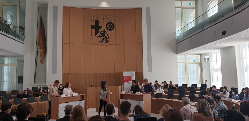 Seine besonnene Art und seine klaren Worte wurden von den Jurys mit hohen Punktwertungen honoriert und ermöglichten Felix somit die Teilnahme am Landesfinale, das im Plenarsaal des rheinland-pfälzischen Landtags im Deutschherrenhaus in Mainz ausgetragen wurde.