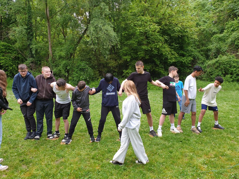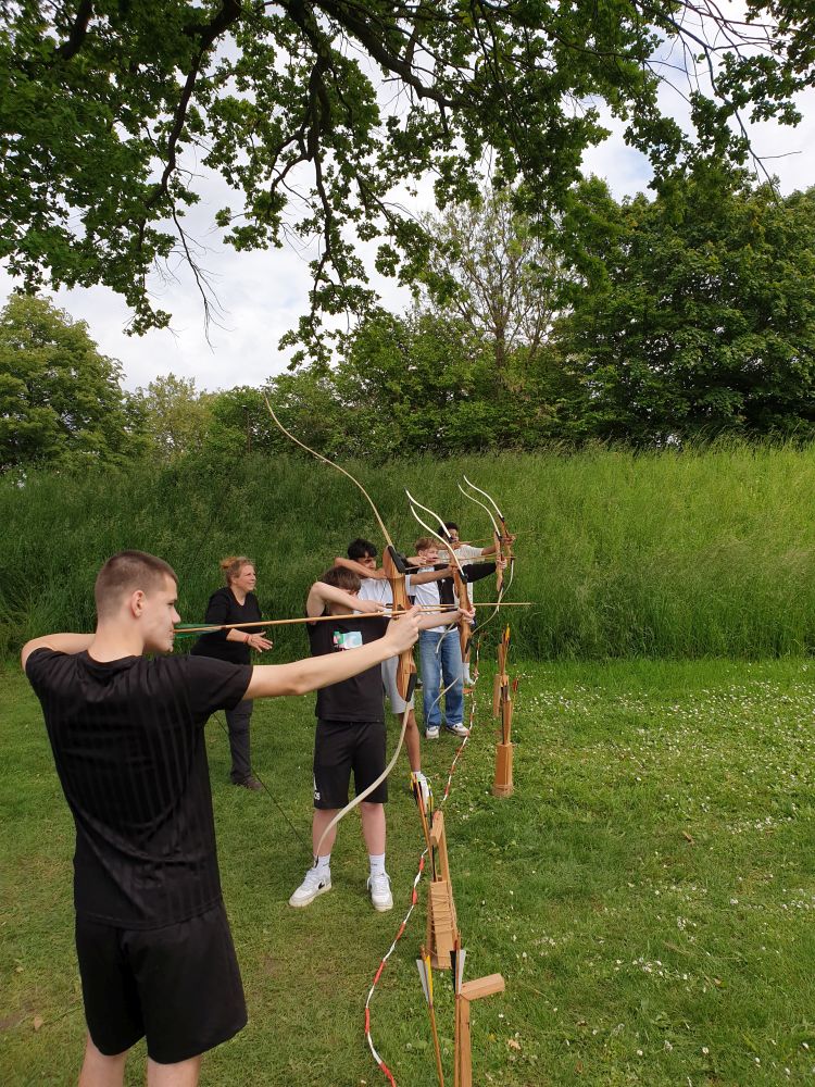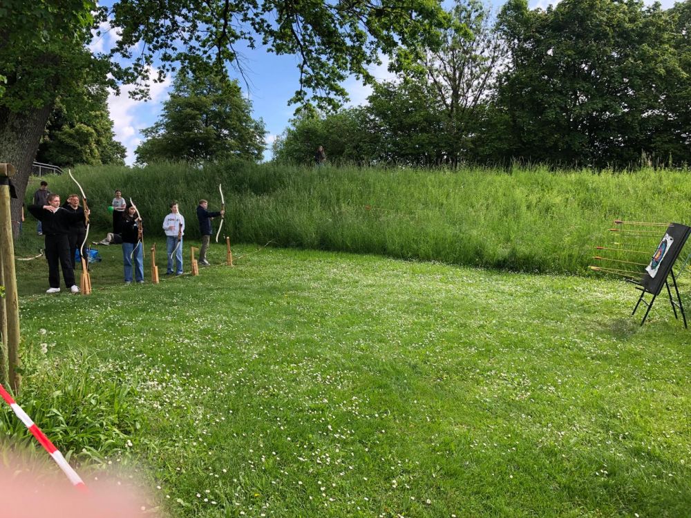 Am Dienstag gab es ab 7 Uhr Frühstück, bevor es dann um 9 Uhr mit den Workshops weiterging. Während die 8A und 8C mit Upcycling und Bogenschießen dran waren, hatte 8B Waldpädagogik auf dem Programm. Sie machten Spiele, die den Zusammenhalt in der Klasse förderten und lernten praktische Sachen über den Wald.