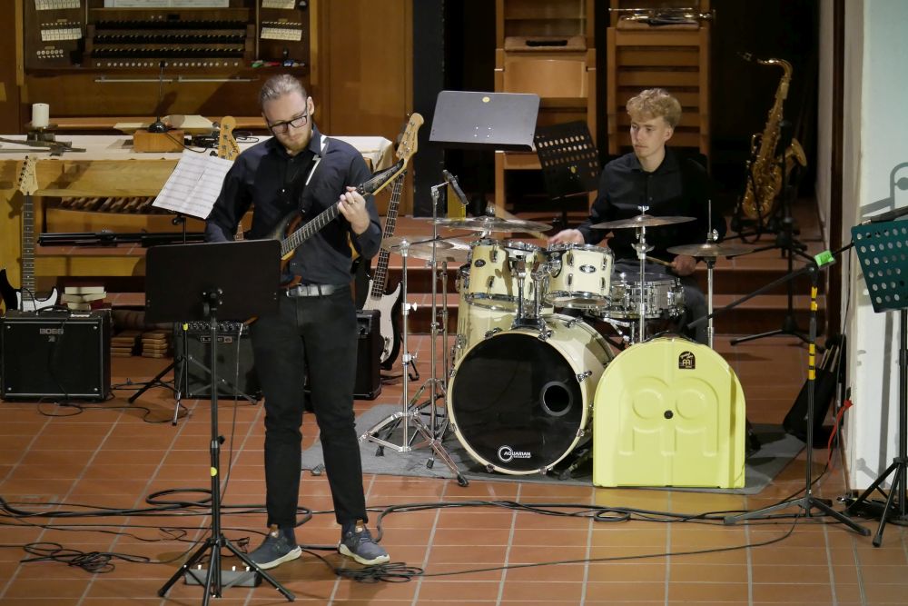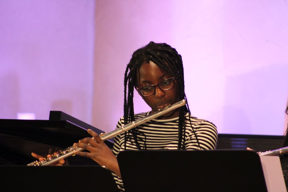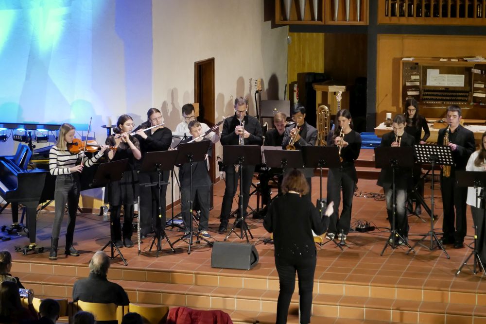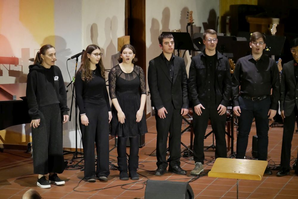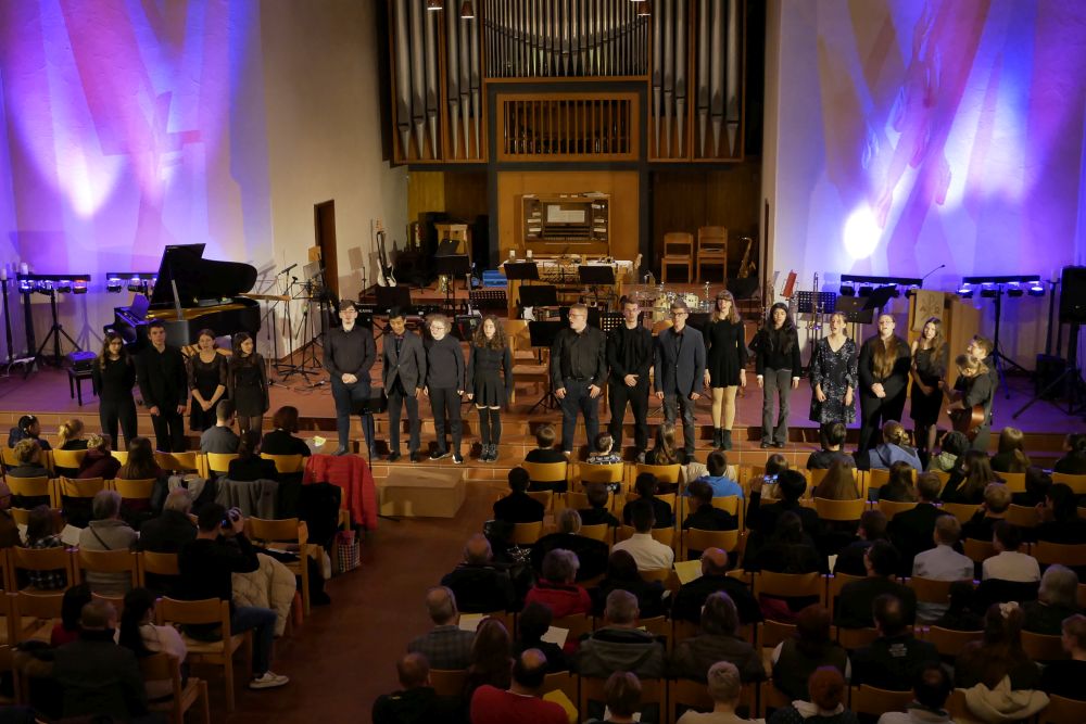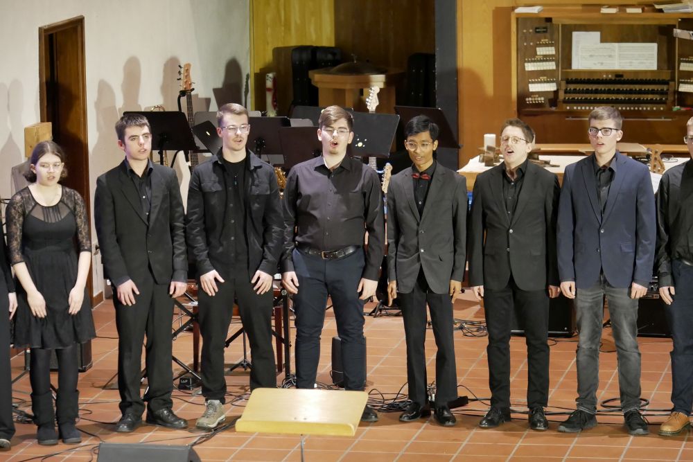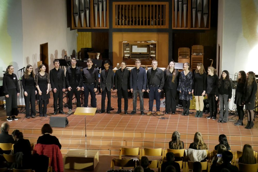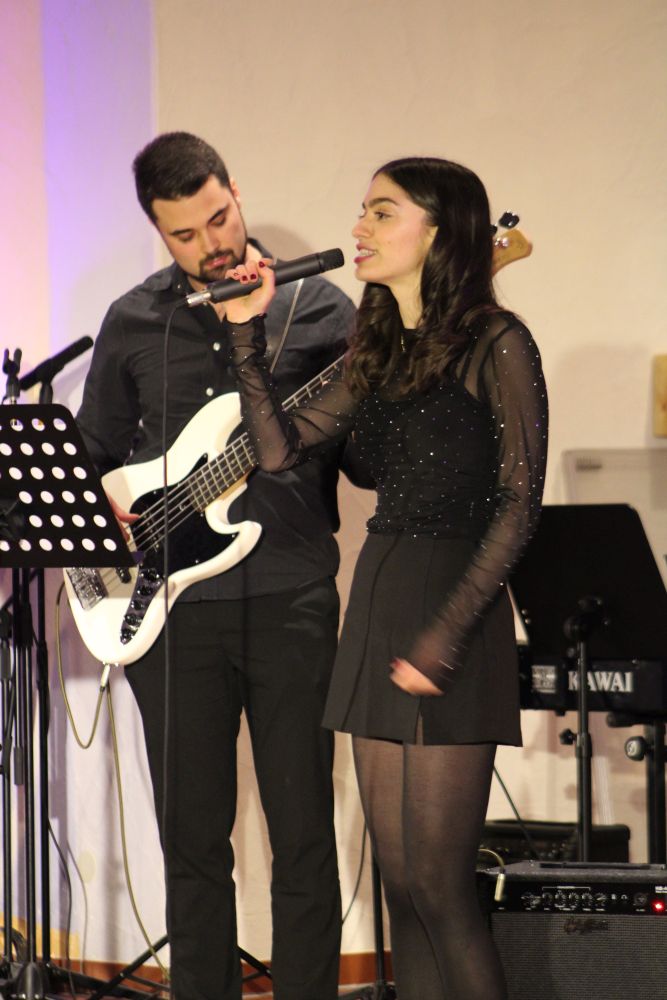 Ariane Shirkhani sorgte dann auch für einen weiteren Gänsehautmoment, als sie ihren selbst geschriebenen Song Hold on präsentierte und dabei von Moritz Vogel am E-Bass, Nils Rötschke an der E-Gitarre und Tom Kelsch am Schlagzeug begleitet wurde. Die Band LG Project unter der Leitung von Lena Knörzer lieferte mit Chameleon und Rolling in the deep kräftig ab und sorgte ebenfalls für große Begeisterung! Den Abschluss des Abends bildete dann noch einmal das Vokalensemble mit einem stimmungsvollen Abendlied, bei dem dann im Schlussdurchgang das ganze Publikum freudig mitsang.