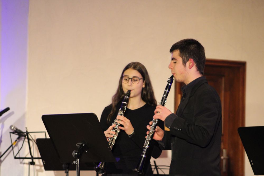 Brilliant nahm der Abend seinen Lauf, denn Flora Liu beeindruckte ebenfalls am Flügel und Bill Lé galoppierte wortwörtlich über die Tasten. Carla-Sophie Westphal berührte uns mit dem emotionalen I see fire von Ed Sheeran, gefolgt von Hannah Kuba und Robin Martel mit einem großartigen Kegelduett an der Klarinette. Robin Martel beeindruckte aber außerdem mit seinen Saxophonkünsten und einem selbst arrangierten Mario Medley, begleitet von Bill Lé am Klavier. Das Vororchester riss das Publikum dann mit Game of Thrones und Shut up and Dance mit, bevor es in die Pause ging.
