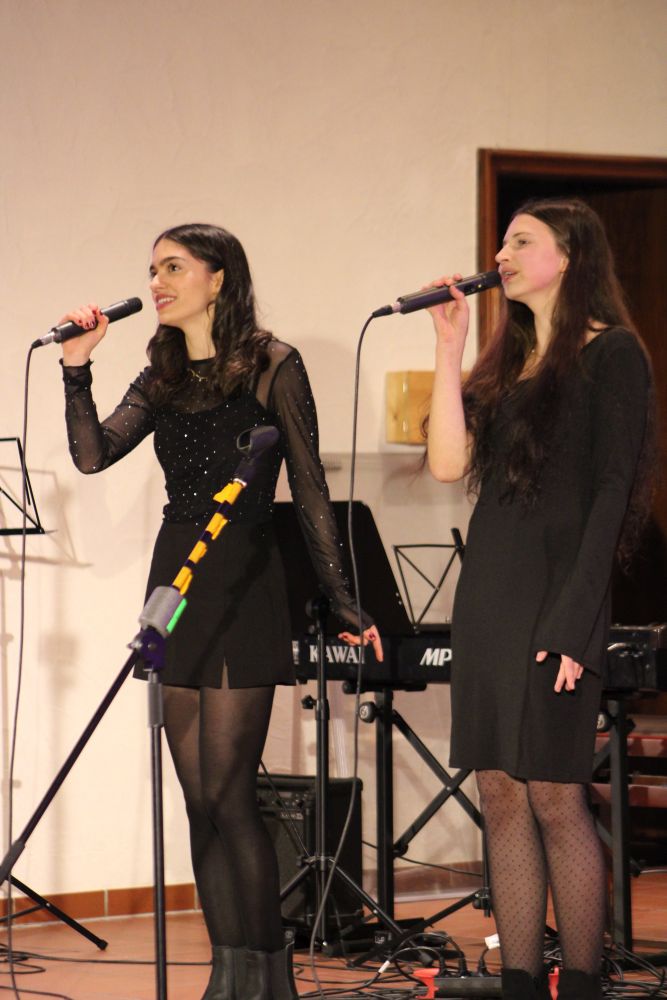 Einen herzlichen Dank an den Förderverein, der in der Pause für erfrischende Getränke sorgte! Anschließend eröffnete das Orchester unter der Leitung von Beate Vehling mit Movie Milestones von Hans Zimmer und Tribute to Roxette und erntete viel Applaus! Das Vokalensemble verzauberte das Publikum dann mit Viva la Vida von Coldplay. Darauf folgte Tobias Herbort mit einem emotionalen Klavierstück. Ebenso gefühlvoll ging es weiter mit Lotta Becker und Ariane Shirkhani, die Elastic Heart von Sia sangen und dabei von Sophia Dinges am Klavier begleitet wurden.