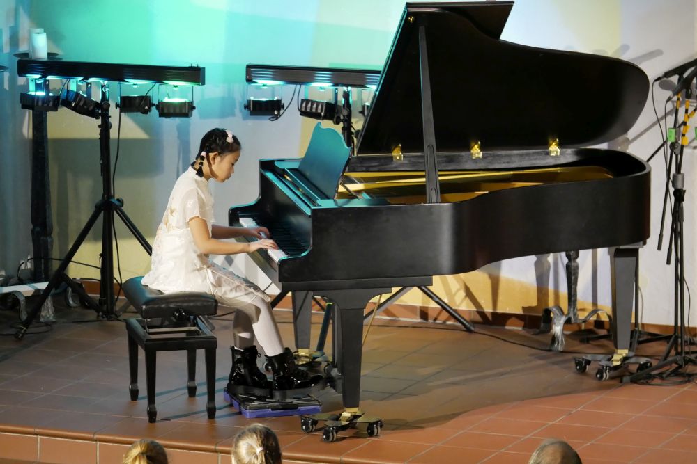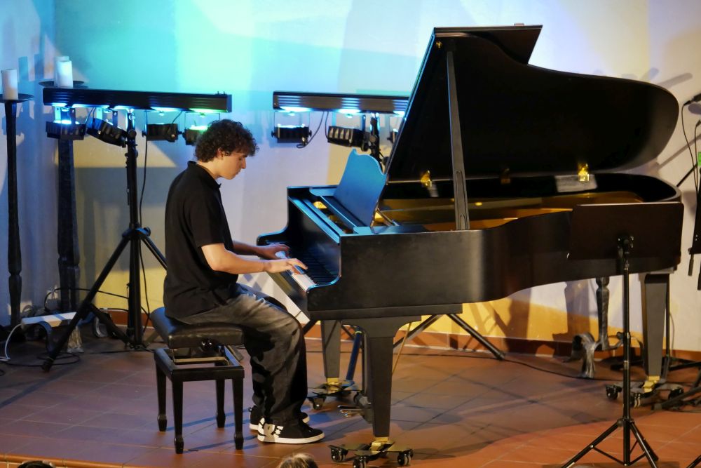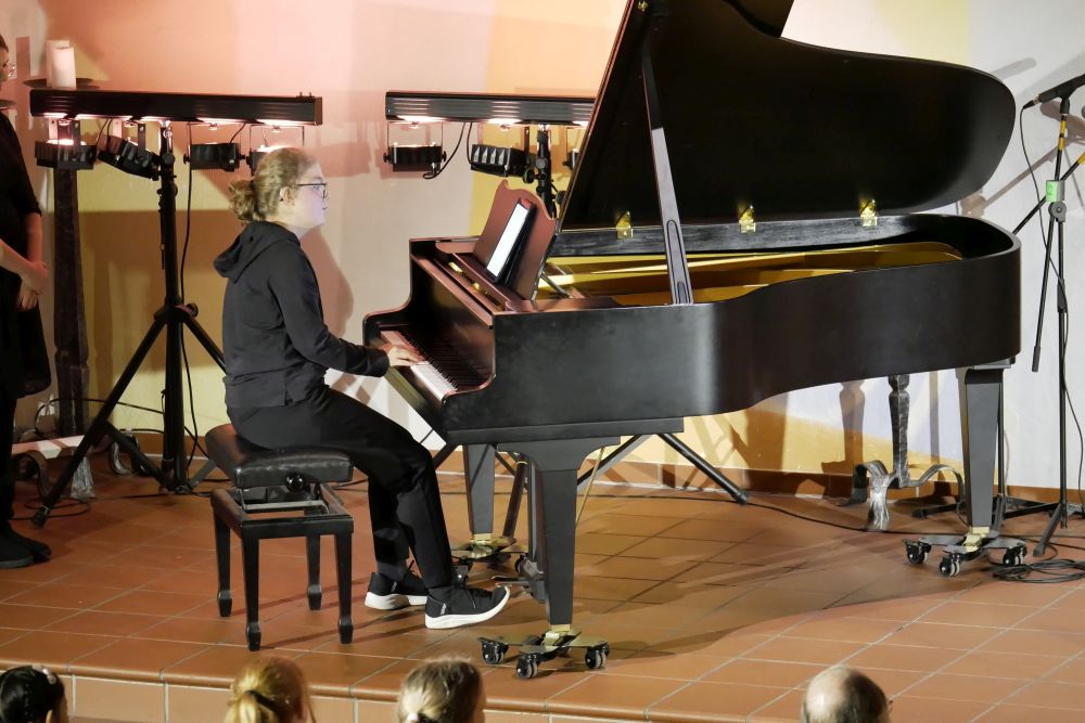 Danach ging es gleich pianistisch weiter. Giulia Bonanno und My Anh Phan begeisterten das Publikum am Klavier. Anschließend gab es ein ganz besonderes Projekt, aus der Projektwoche des letzten Schuljahres. Nicolas Sill präsentierte ein selbst komponiertes Stück am Klavier und Herr Lingenberg begleitete dann ebenfalls am Klavier Sebastian Conrad, der für den leider erkrankten Felix Tomsitz an der Trompete einsprang. Seine tolle Komposition durfte das Publikum trotzdem in voller Schönheit erleben.