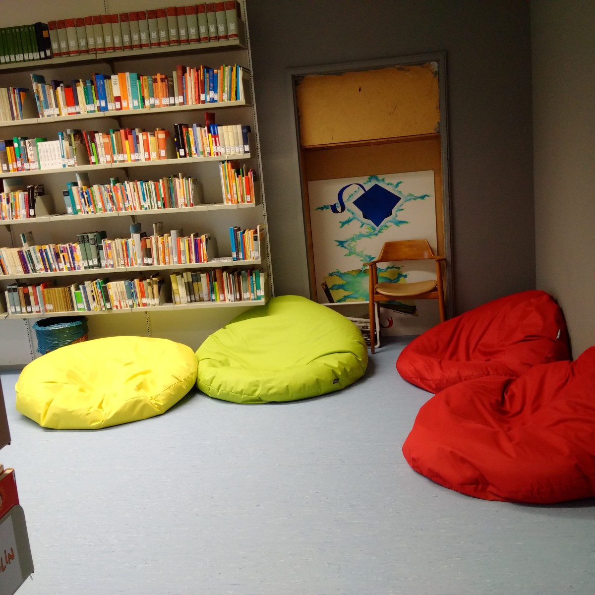 - Besonders profitieren wir davon, dass wir über die Rheinberger-Stiftung eine eigene Bibliothekarin an der Schule haben, die unsere Bibliothek engagiert und liebevoll betreut. So steht inzwischen ein großes Repertoire an Kinder- und Jugendliteratur zur Verfügung.