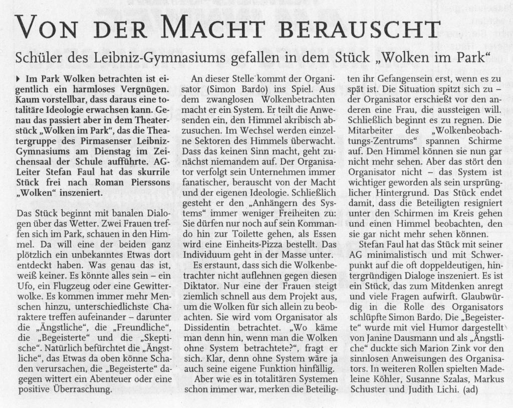 Theater - Wolken im Park, 10/2007