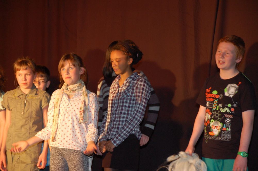 Mit Witz und schauspielerischem Können boten die Darsteller, die zum großen Teil zum ersten Mal auf einer Bühne standen, die Szenen dar und brachten auch die Lieder gut verständlich zu Gehör. Vor allem durch die Regiearbeit von Herrn Faul hat jedes Ensemblemitglied sich schauspielerisch im Laufe der Probenarbeit weiterentwickeln können und so ist es nicht verwunderlich, dass ein Schauspieler nach der Aufführung hinter der Bühne sagte: "Ich bin richtig stolz auf mich!" Was will man als Leiter einer AG mehr?
