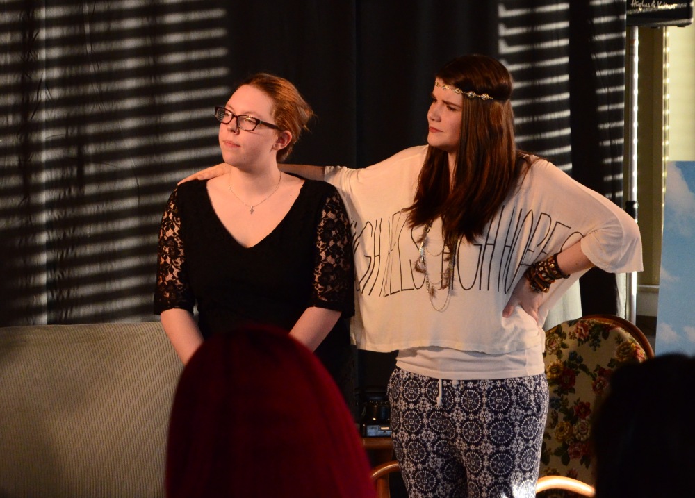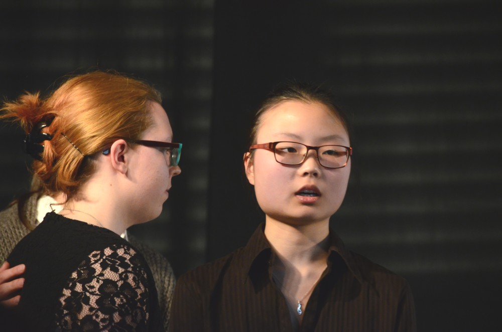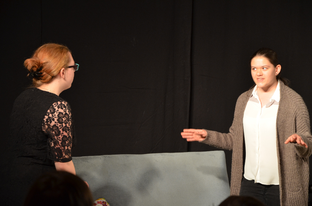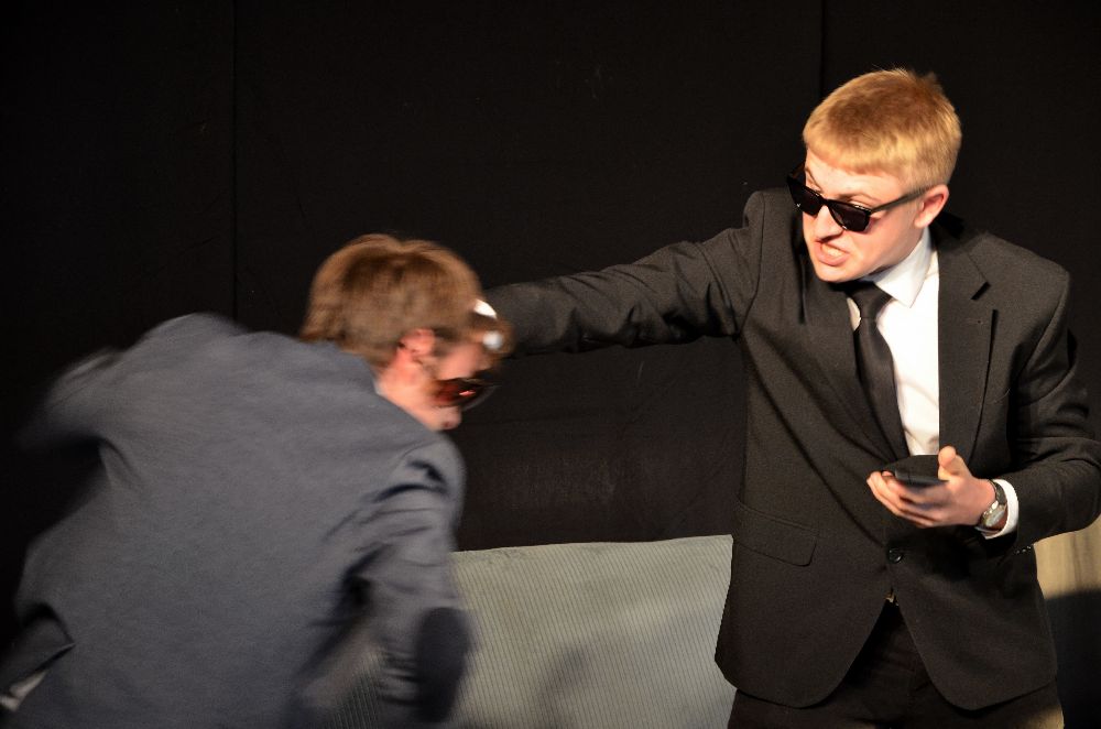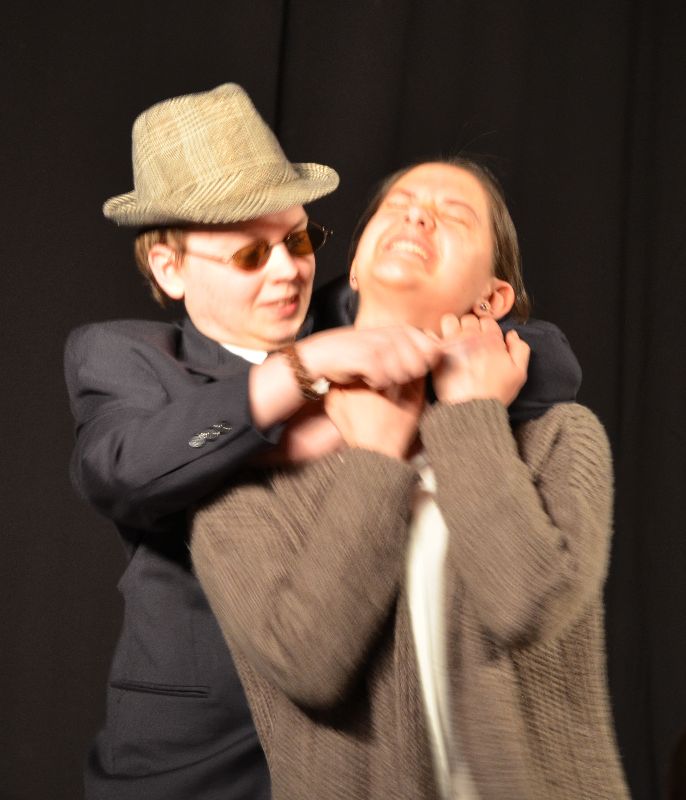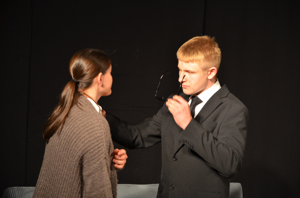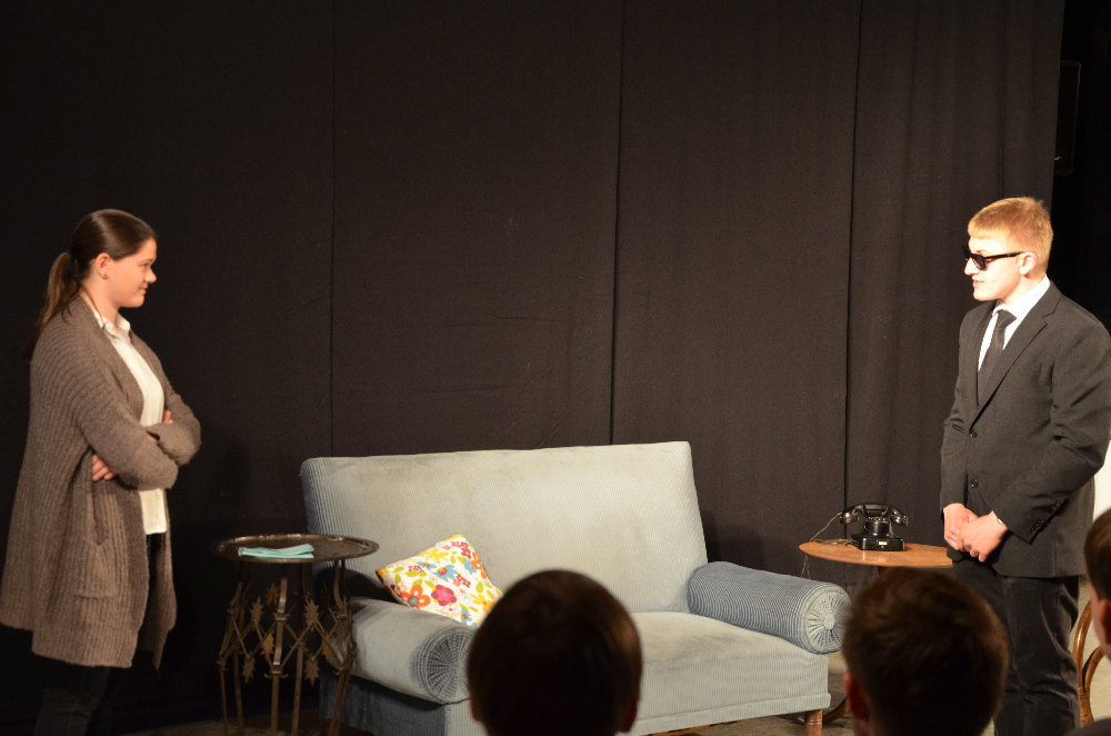 | Soufflage | Jana Wagner und Joel Wölker diskret unterstützend im Hintergrund. |