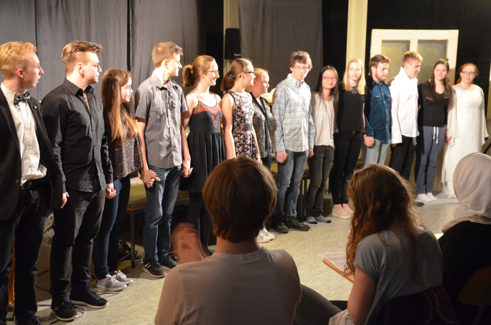 Neben den Helfern hinter der Bühne (Darién Graber, 10b und Vanessa-Fee Ulrich, 10c) und der Souffleuse (Jana Wagner, MSS 13) verdient insbesondere Julia Knecht ein deutliches Lob, da sie trotz einer leichten Kehlkopfentzündung ihre auch teils herausfordernden Passagen gekonnt meistert.
