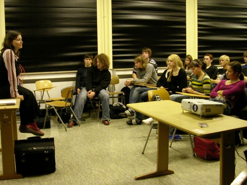 Im Rahmen der Aktion "Jugend gegen Rechts" schauten die Schüler der 10. Jahrgangsstufe den Film "Platzangst"; anschließend konnten die Schüler mit der Regisseurin Heike Schober über die Hintergründe ihres Films diskutieren. Der Film schildert die Liebe eines Jungen aus der rechtsextremistischen Szene, der sich in ein russisches Mädchen verliebt. Dabei gerät er in den Gewissenskonflikt, ob er der Stimme seines Herzens oder dem Gemeinschaftsgefühl seiner Clique folgen sollen. Von der Regisseurin erfuhren die Schüler, dass eine tatsächliche Begebenheit der Filmhandlung zugrunde liegt.