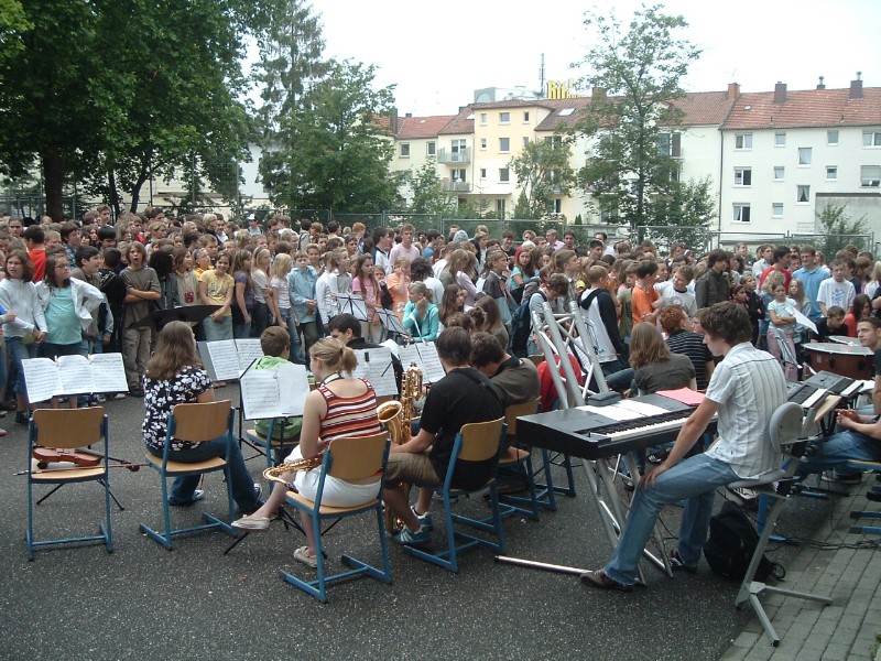 Das Schulorchester brachte am Donnerstag, 21.06.07, in der ersten Pause unter regem Besuch durch die restliche Schülerschaft Herrn Herr zum Abschied ein Ständchen im Schulhof. Herr Herr bedankte sich und hielt eine Ansprache am Fenster von Raum 105. [Mehr ...]