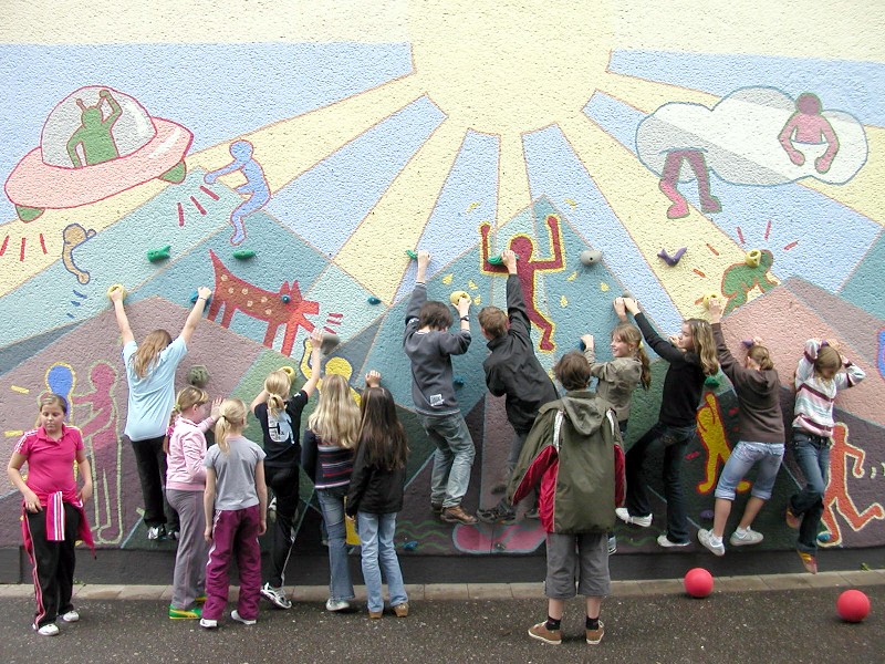 Nach langer Planungs- und Bauzeit ist die Boulderwand (horizontale Kletterwand) an der Hausfassade beim Sportfeld fertig und wurde der Presse vorgestellt. Schüler und Schülerinnen dürfen in den Pausen, eventuell in Freistunden und im Sportunterricht daran klettern. [Mehr ...]