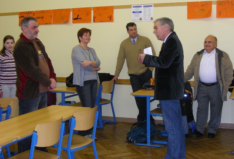 Nach einer langen Vorbereitungszeit konnte das hauseigene Terrarium seiner Bestimmung übergeben werden. Neben den Schüler(inne)n der Reptilien-AG waren als Vertreter des "Vereins zur Förderung des Leibniz-Gymnasiums" Herr Ramster und Herr Hartlieb zugegen, ferner der Inhaber des Aquarien- und Reptilienfachhandels "Aqua Sel" Heinz Seltmann, der Fachvorsitzende der Biologie Herr Rieder, der Schulleiter Herr Kallenbach, der Leiter der Reptilien-AG Herr Rötzer und Vertreter der Presse. Im Rahmen dieser Veranstaltung wurde zunächst dem Förderverein und Herrn Seltmann für die tatkräftige Unterstützung gedankt, ohne die dieses Projekt nicht durchführbar gewesen wäre. Zugleich wurde das neue Terrarium mit seinen neuen Bewohnern besetzt. Um den Tieren auch in Zukunft optimale Lebensbedingungen bieten zu können, wurden Patenschaften von den Vertreter des Fördervereins übernommen. Zusammen mit den Schülern der Reptilien-AG konnten sie ihre Kreativität spielen lassen, um Namen für die Tiere zu finden. Der Pate Herr Ramster konnte sich mit den Schülern auf den Namen "Lucy" einigen und Herr Hartlieb auf den Namen "Lea". Pate für das dritte (männliche) Tier wurde später der Schulelternsprecher, Herr Preiß. Es erhielt den Namen "Peter".