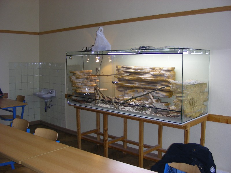 06.02.08: Reptilien-AG besetzt selbst gebautes Terrarium mit Bartagamen