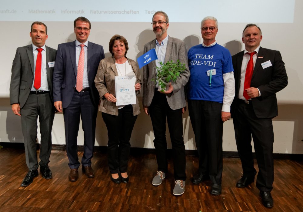 René Chassein, stv. Vorsitzender VDE Bezirksverein Kurpfalz, Dr. Ditmar Flothmann, MINT-Beauftragter, VDI Nordbaden-Pfalz, Stefan Küpper, Geschäftsführer Politik, Bildung und Arbeitsmarkt der Arbeitgeber Baden-Württemberg sowie Volker Schebesta (MdL), Staatssekretär im Ministerium für Kultus, Jugend und Sport (Baden-Württemberg) vergaben die Auszeichnung "MINT-freundliche Schule".