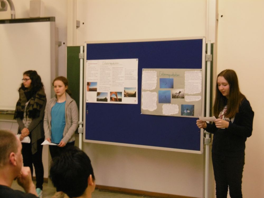 In der dreitägigen Erarbeitungsphase wurde dann das jeweilige Thema bearbeitet und am 7. Februar beim Präsentationsabend einem großen und wohlwollend aufmerksamen Publikum vorgestellt. Eltern und Lehrer wurden dabei z.B. über Extremsportarten, Baumgrenzen, die Organisation „Ärzte ohne Grenzen“, Mobbing und noch viele weitere Themen informiert.