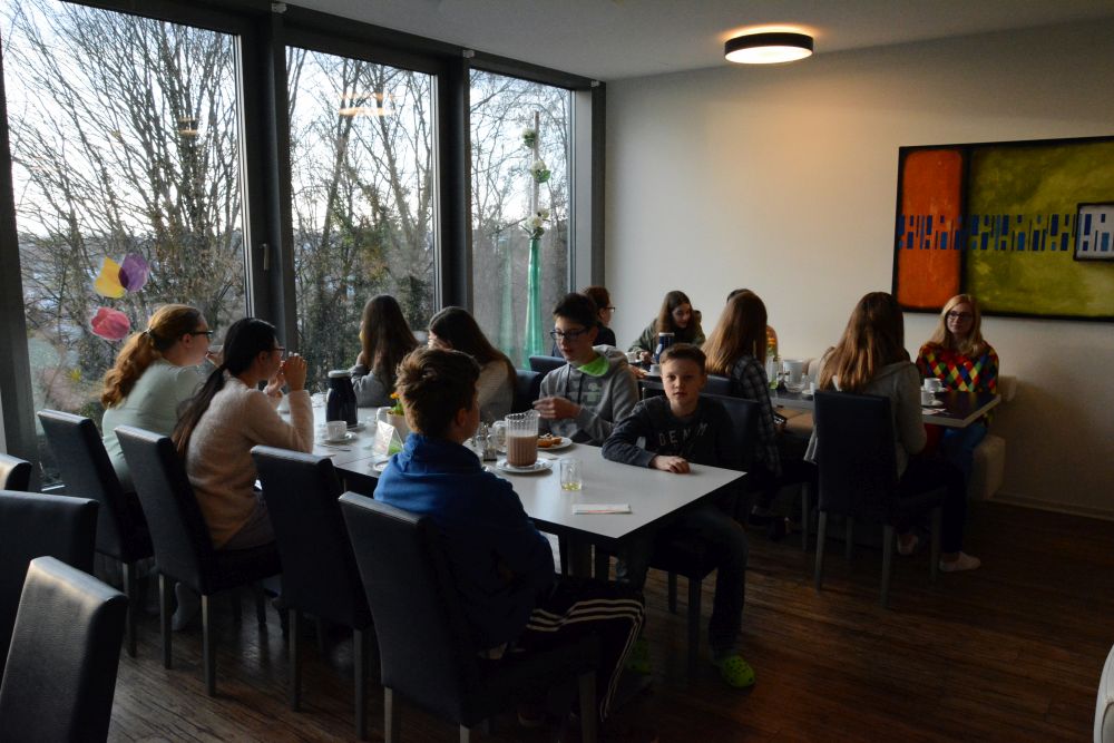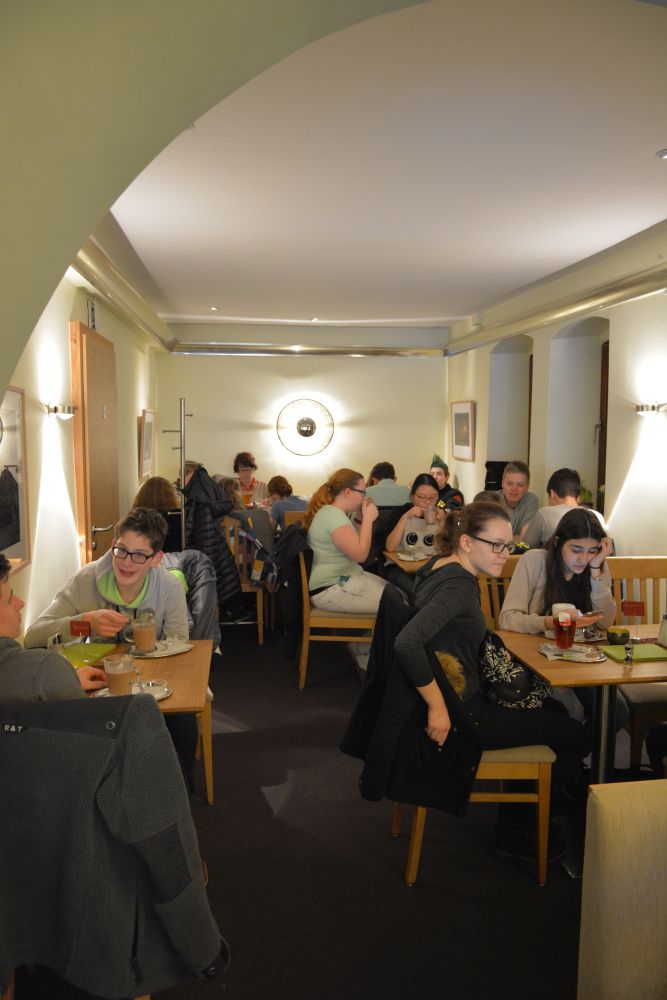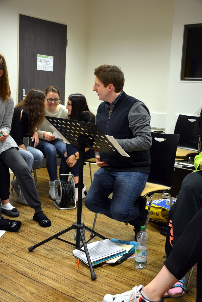 Neben den Proben gab es die üblichen Spieleabende mit dem unermüdlichen Spielleiter Herrn Lutz, bei denen immer wieder schön zu sehen ist, wie selbstverständlich Schülerinnen und Schüler aus allen Klassenstufen begeistert mitspielen („Herr Lutz, spielen wir noch eine Runde „Werwolf?").