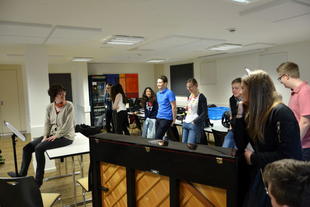Neben aller Tradition gab es aber auch Neues: Erstmals fuhren wir nicht mit dem Linienbus, sondern ließen uns bequem mit einem Reisebus kutschieren. Das war aber auch dringend nötig: Der Busfahrer schaute immer nachdenklicher auf die großen Gepäckberge, die sich nach und nach vor dem Bus auftürmten (Koffer, Orchesterinstrumente, Band-Equipment, Cajon und Schlagzeug), aber letztendlich konnte alles verstaut werden. Leider waren dann aber die Band-Mikrophone und die Fußmaschine des Schlagzeugs so gut im Bus versteckt, dass sie in Bergzabern nicht mit ausgeladen wurden und – zu Frau Knörzers Entsetzen – wieder mit dem Bus Richtung Pirmasens fuhren. Ein Mikrophon konnten wir bei der Jugendherberge ausleihen, aber wo sollte man so schnell eine Fußmaschine hernehmen? Ein Anruf beim Gymnasium Bad Bergzabern brachte die „Rettung": Herzlichen Dank an die dortige Fachschaft Musik, die uns sofort aushalf.