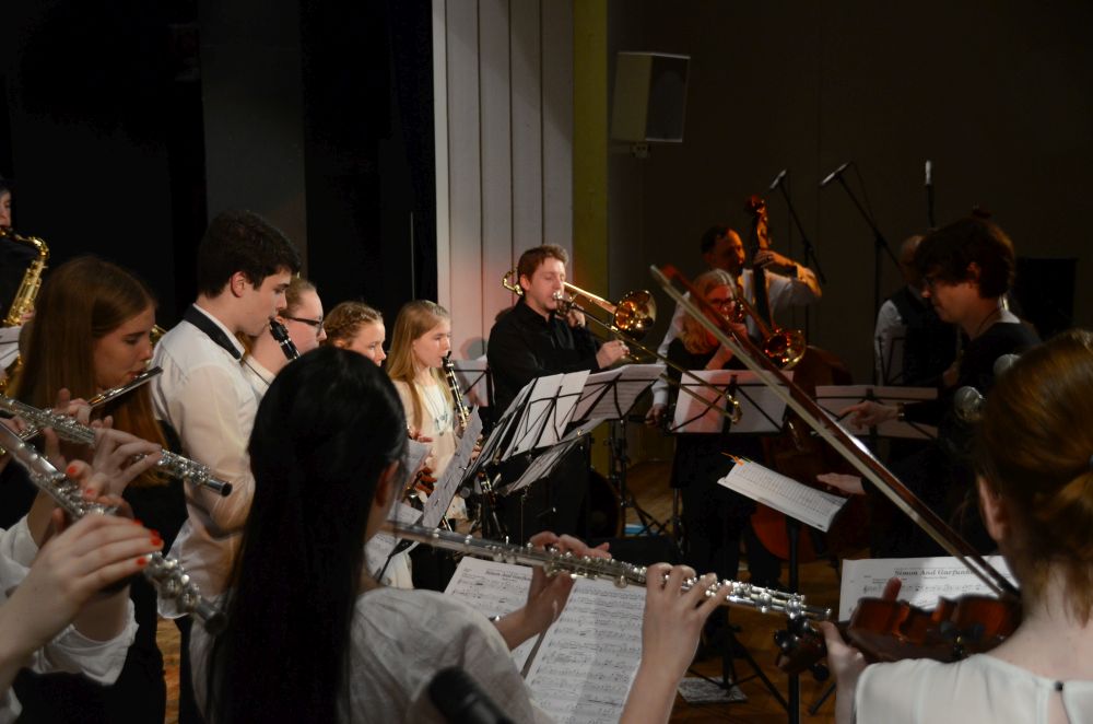 Mit erfreulich starkem Bläser-Sound und schnellen Beats entließ das Orchester unter der Leitung von Frau Vehling das Publikum dann in die Pause.